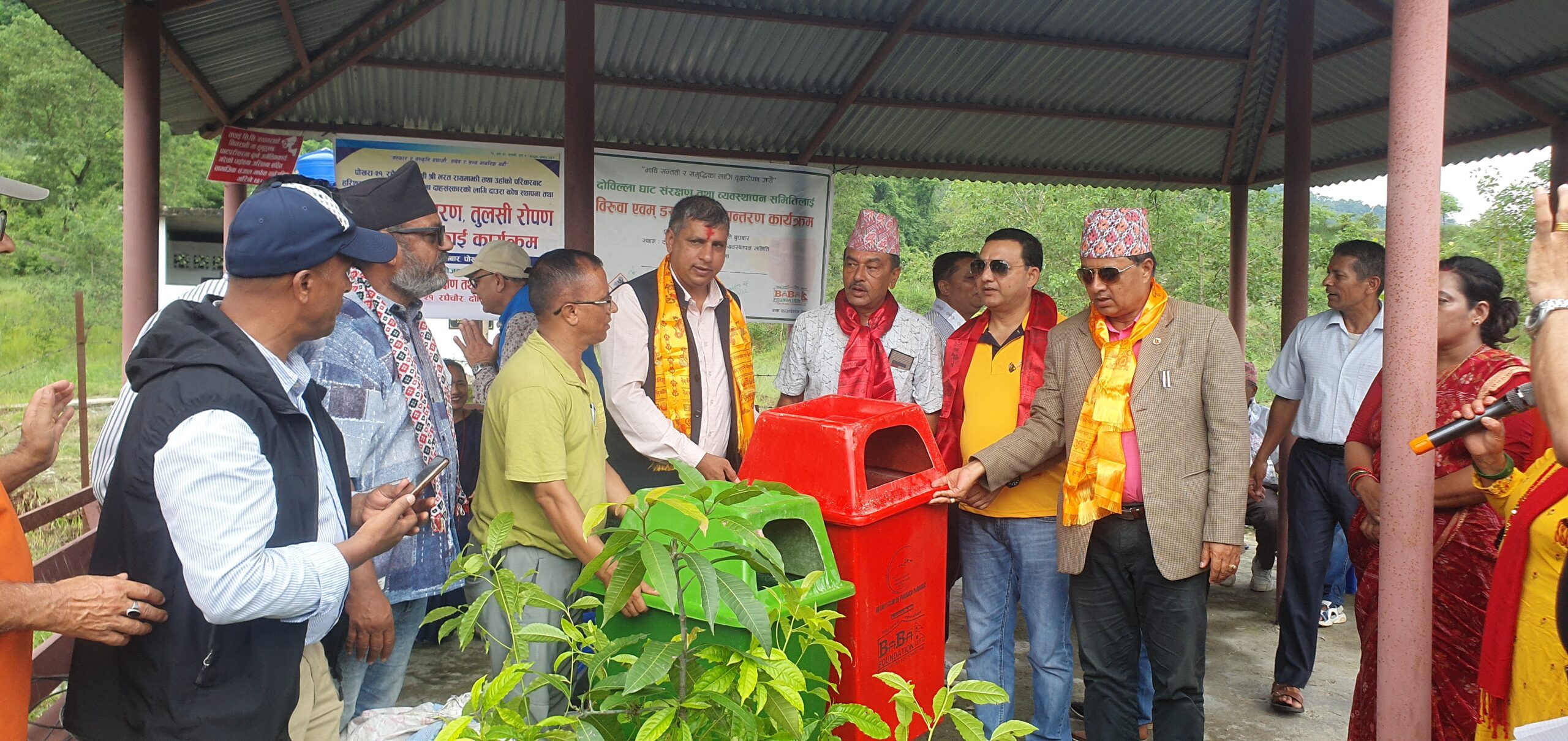 Different kinds of trees were planted and dustbins were donated to the cremation place at Dobilla Ghat.