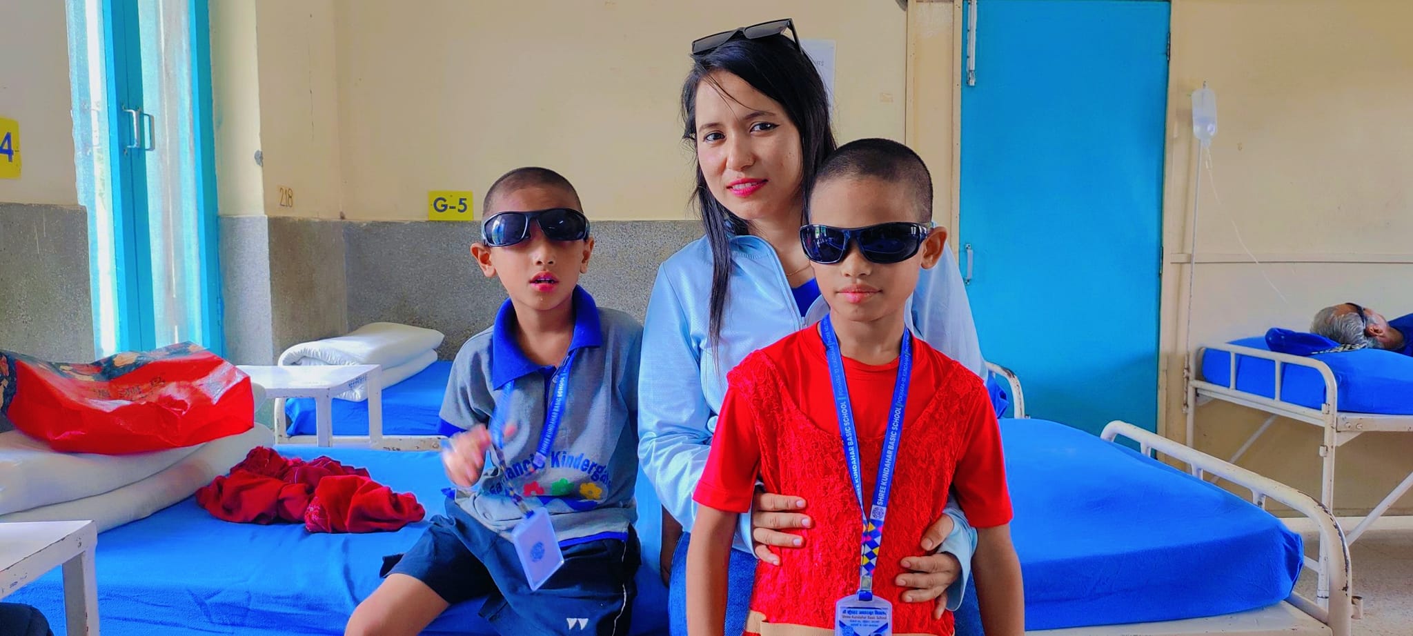 Students with severe cataract eye problems from Kundahar Aaadharbhut School after the cataract eye surgery