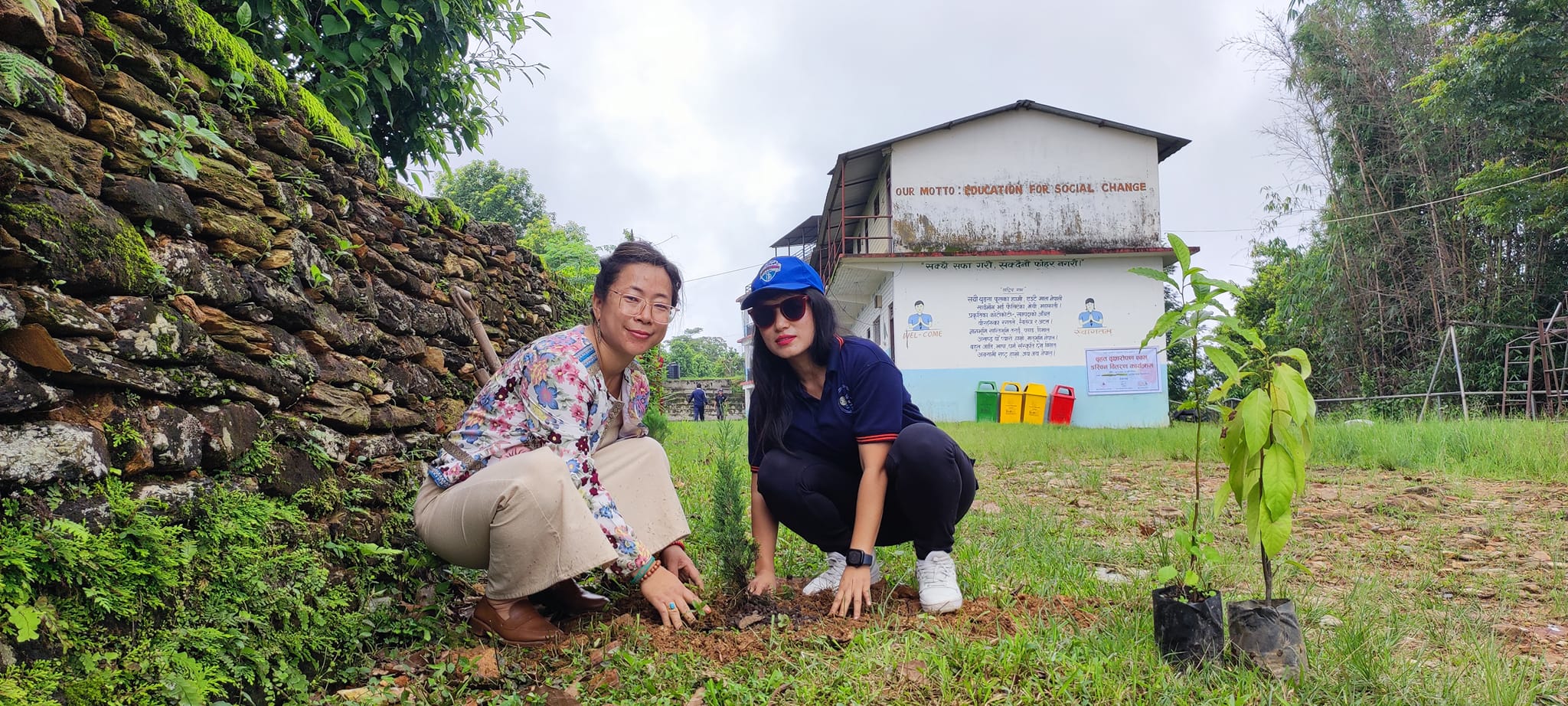 Various kind of trees were planted at Fukuoka Secondary School premises at the Nirmal Pokhari. Dustbins were also given to the school and community.